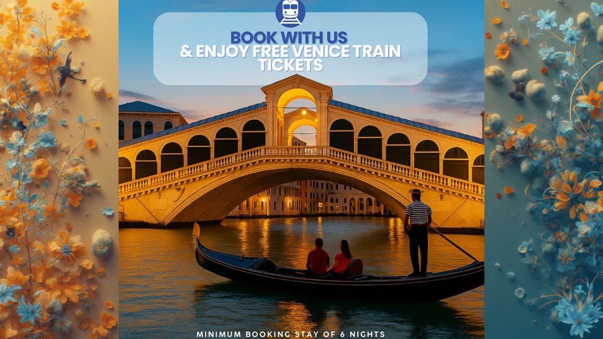 Möchten Sie den Zauber von Venedig ohne Autostress oder Transportkosten erleben? Wenn Sie in unseren Unterkünften übernachten, laden wir Sie zur Reise ein!